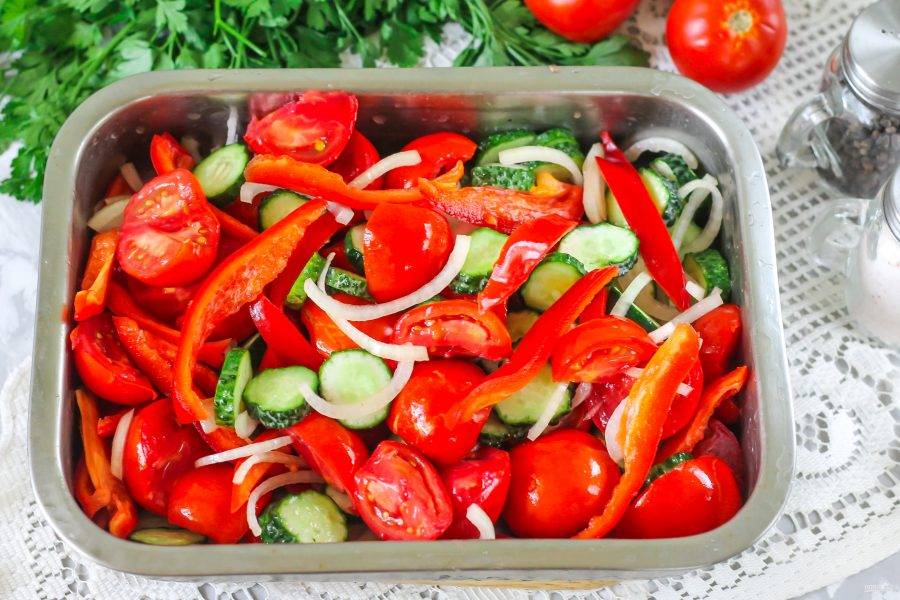 Салат из перцев, огурцов и помидоров на зиму
