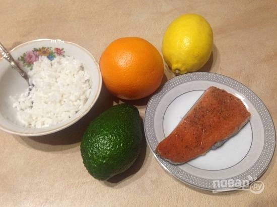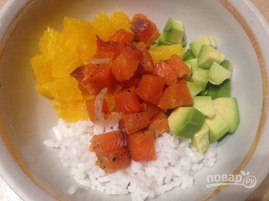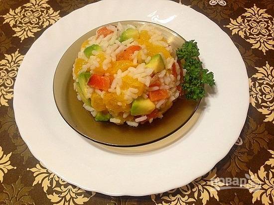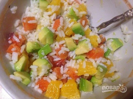 Салат из риса с лососем, авокадо и апельсином