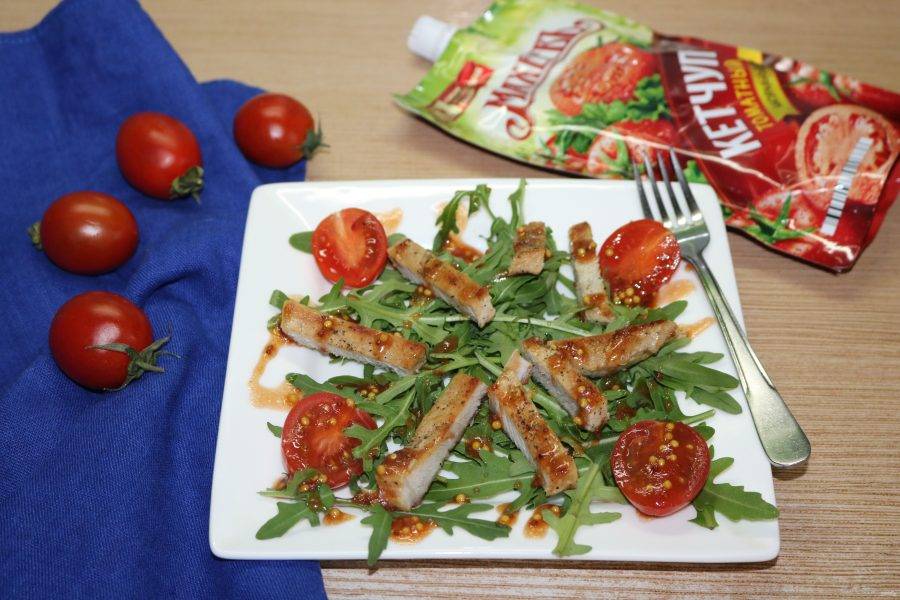 Салат из рукколы со стейком и кетчупом "Махеевъ" Беларусь