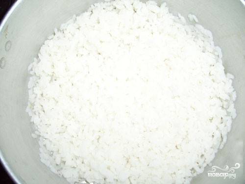 4. Заранее отварите рис, промойте его под проточной водой и откиньте на дуршлаг, чтобы стекла вся лишняя вода. Важно, чтобы рис не переварился.