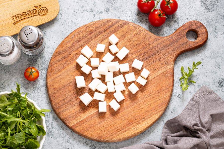 Сыр фета нарежьте кубиками.