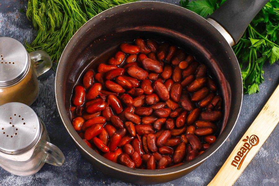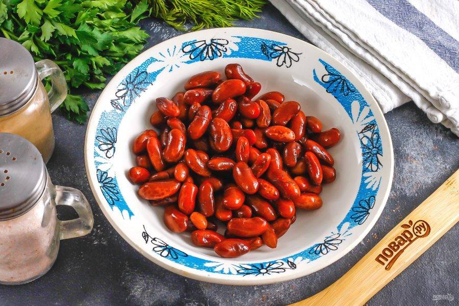Отварите фасоль в течение 1-1,5 часов, свеклу в течение 40 минут. Обязательно остудите на холоде. Свеклу и фасоль можно отварить заранее и остудить.