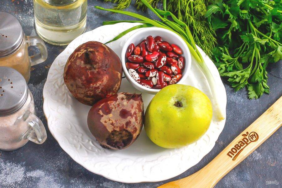 Видео рецепт "Салат из свеклы с фасолью и яблоком"