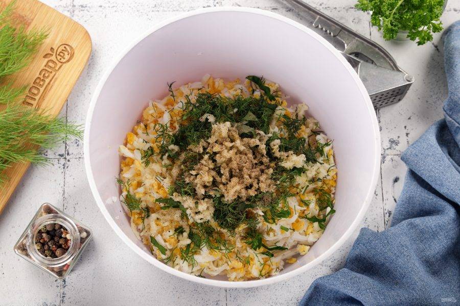 Добавьте любую свежую зелень, у меня петрушка и укроп.