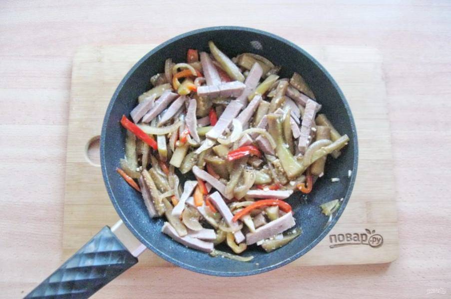 Посолите, перемешайте все ингредиенты. Прогрейте еще 3-4 минуты и снимайте с плиты.