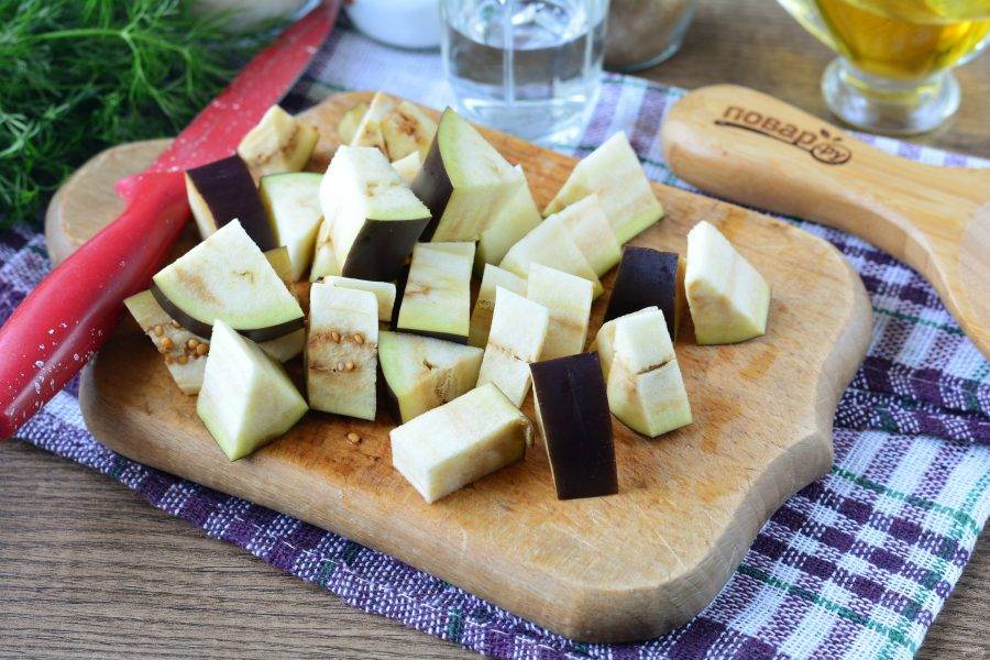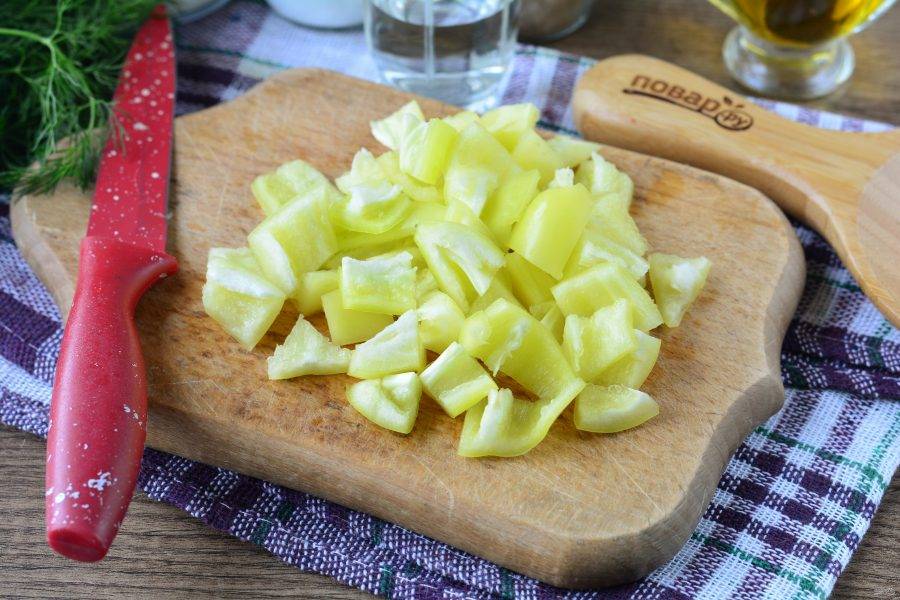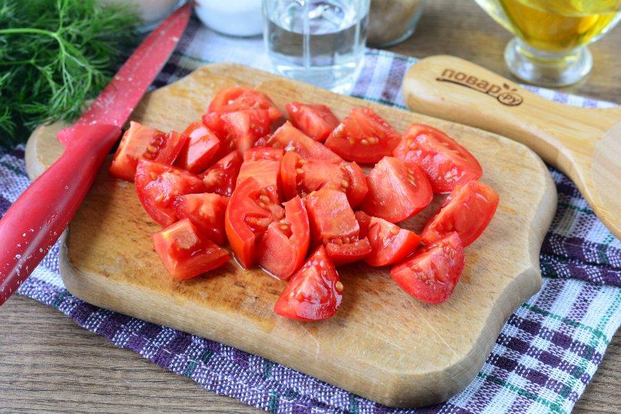 У помидор срежьте плодоножки, нарежьте овощи кубиками.