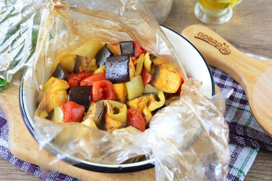 Запекайте овощи 35-40 минут в духовке при температуре 180-190 градусов.