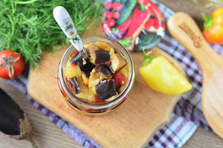 Салат из запеченных баклажанов и перца на зиму идеально хранится в кладовой и его приготовление не доставит вам хлопот. Берите на заметку рецепт!