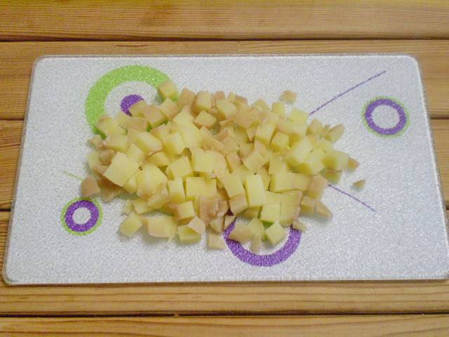 4. Картофель нарезать кубиками.