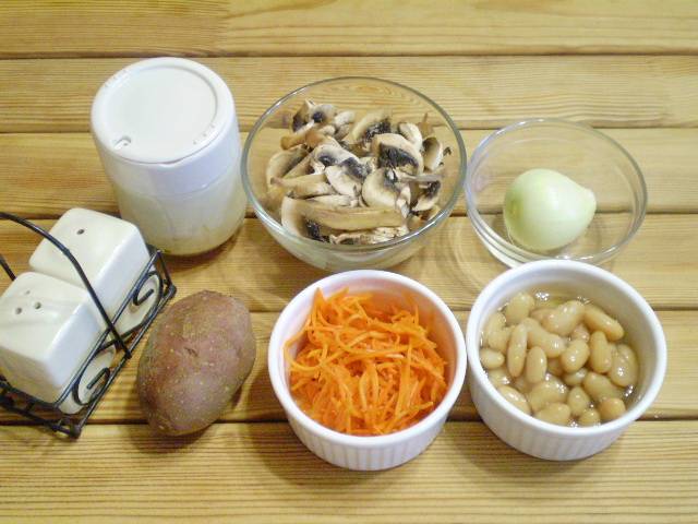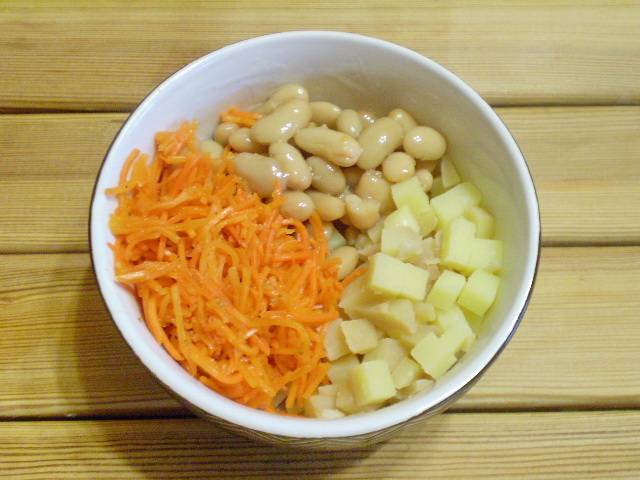 1. Приготовим продукты. Отварить картофель. Фасоль подойдет как консервированная, так и отварная.