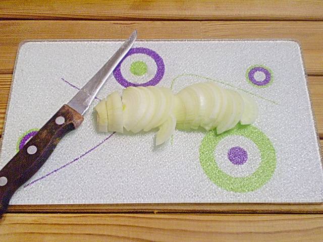 2. Лук нарезать тонко полукольцами.