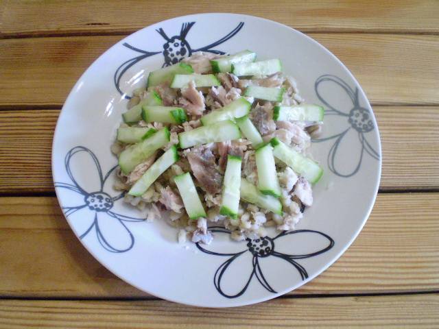 Не знаете, что приготовить к макаронам? Попробуйте мой салат. Он сытный, вкусный, с освежающими нотками свежего огурчика. Готовится просто и быстро, при условии уже готовой перловой крупы.