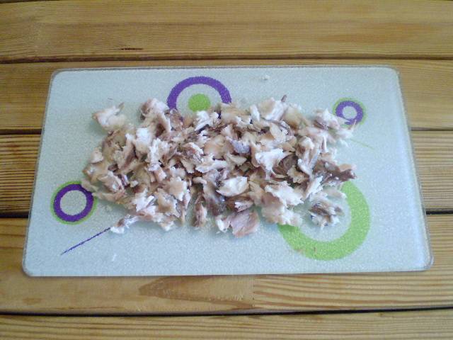 3. Рыбу отделить от костей и кожи, порезать или разобрать руками на кусочки.