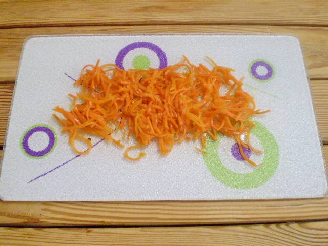 2. Корейскую морковь нужно порезать на короткие полоски.