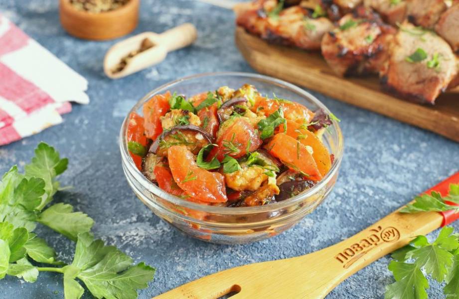 Чтобы приготовить салат к шашлыкам по этому рецепту, понадобится минимум ингредиентов и минимум времени на приготовление. Салат простой и легкий, подойдет к шашлыку из любого мяса.