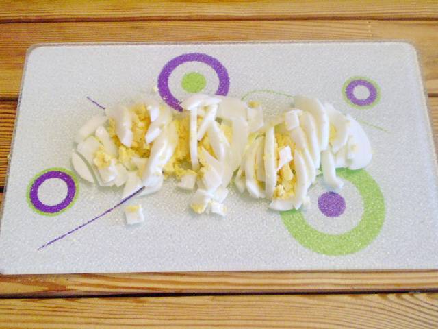 1. Приготовим продукты. Яйцо отварить, очистить.
