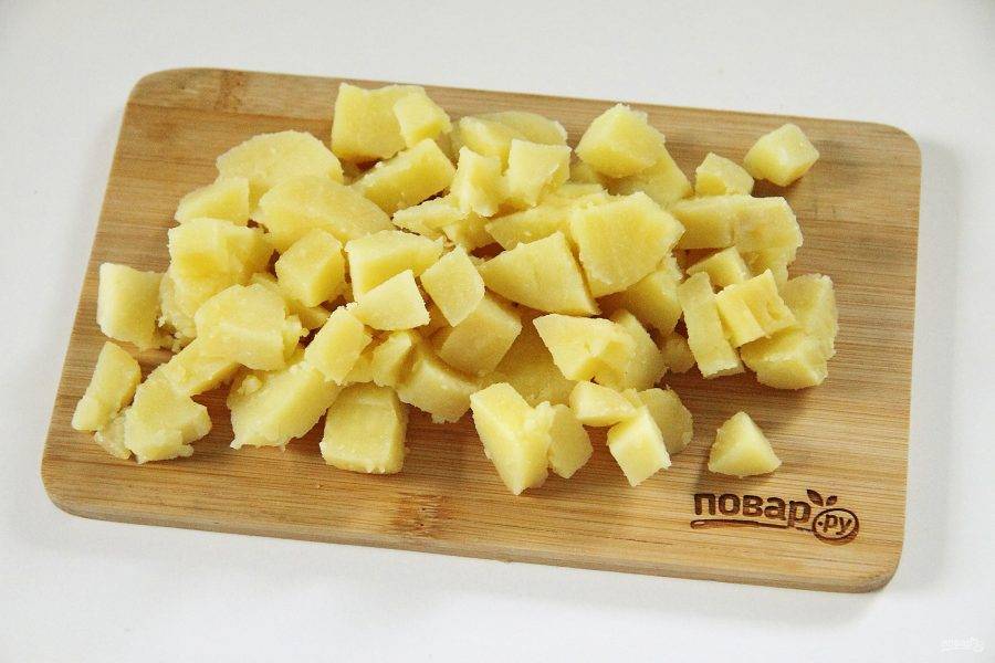 Подготовьте все ингредиенты. Картофель заранее отварите в мундире и охладите.