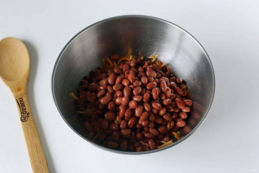 Добавьте фасоль, предварительно слив с нее жидкость.