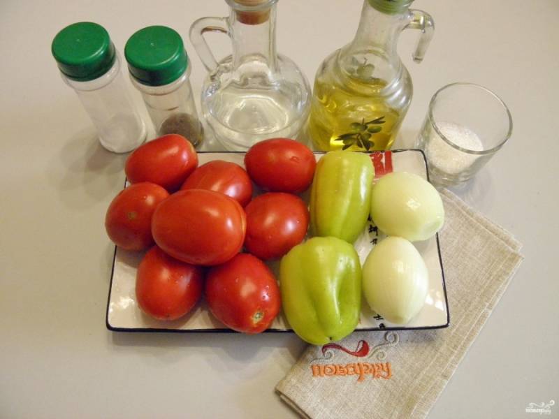 Подготовьте овощи для консервации, все хорошенько вымойте и очистите. Отмерьте масло, соль и сахар. Уксус понадобится в самом конце перед закаткой.