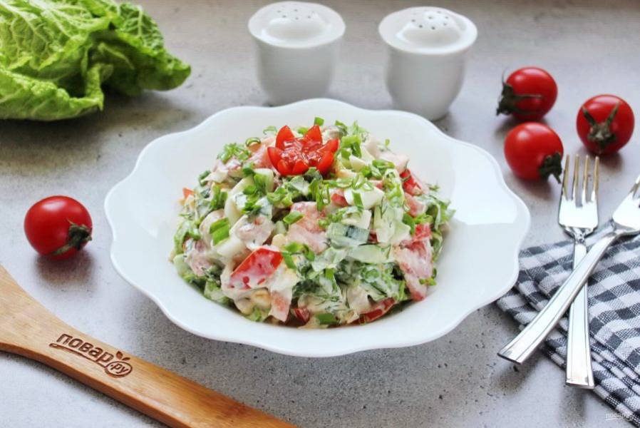 Куриный салат с пекинской капустой готов. Приятного аппетита!