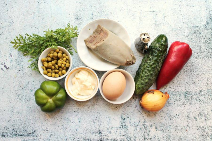 Подготовьте все необходимые ингредиенты для приготовления салата. Овощи вымойте, яйцо отварите вкрутую и остудите.