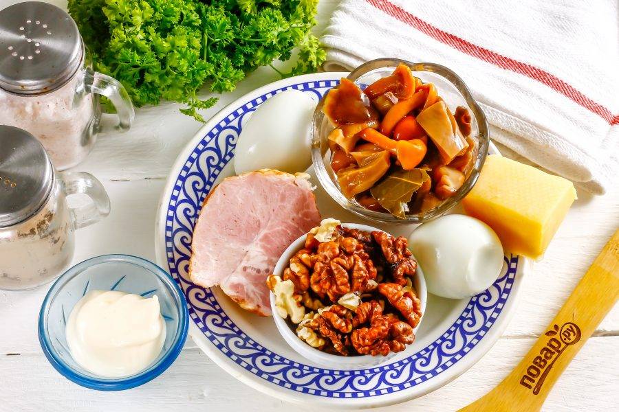 Подготовьте указанные ингредиенты. Вместо ветчины можно использовать копченый балык, копченую куриную грудинку.