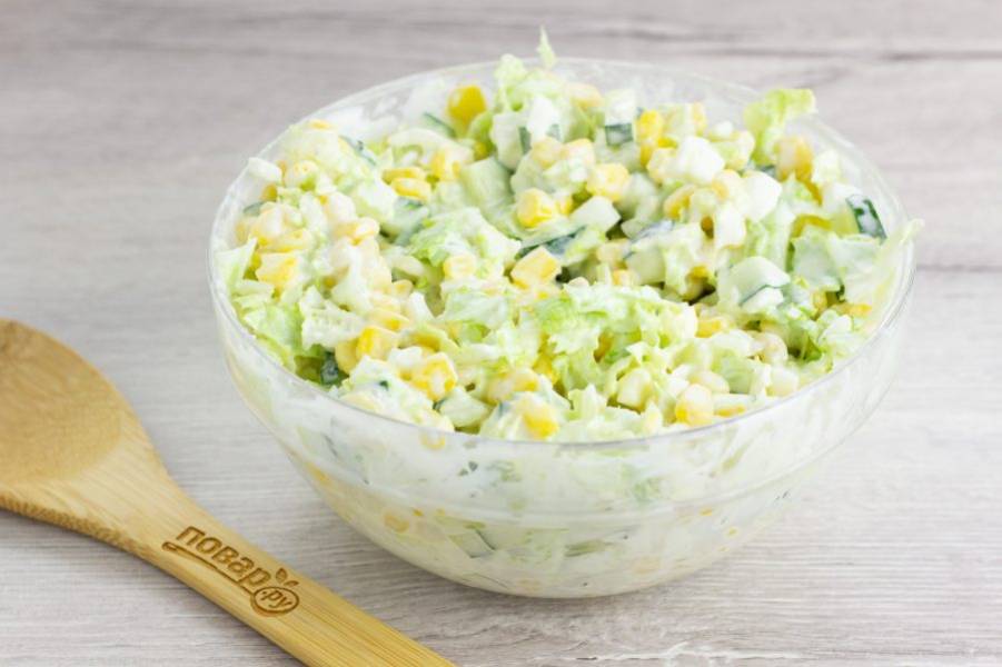 Салат с пекинской капустой можно приготовить за считанные минуты. Такой салат прекрасно разнообразит рацион и дополнит любое блюдо. Вкусно получится, если подать такой легкий салат к каше или мясу.