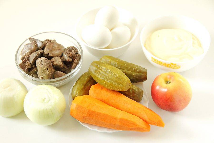 Подготовьте все ингредиенты. Заранее отварите яйца вкрутую и отварите до готовности печень.