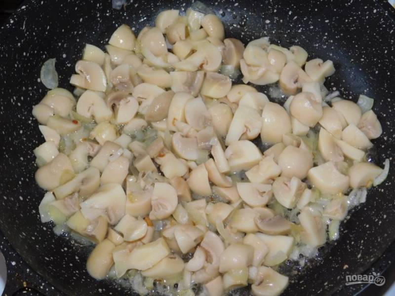 Обжарьте шампиньоны с мелко нарезанным луком, затем остудите.