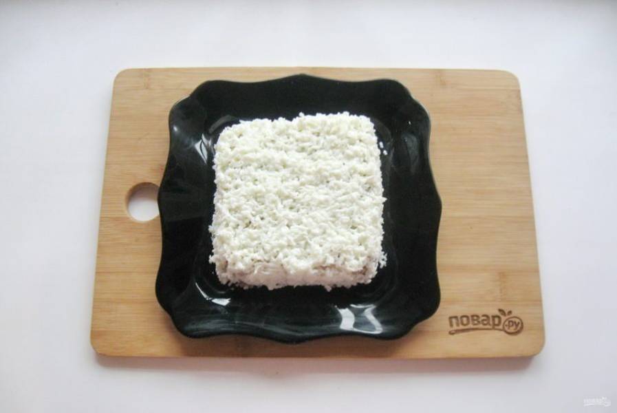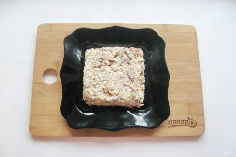 Выложите салат на тарелку в виде квадратной коробочки.