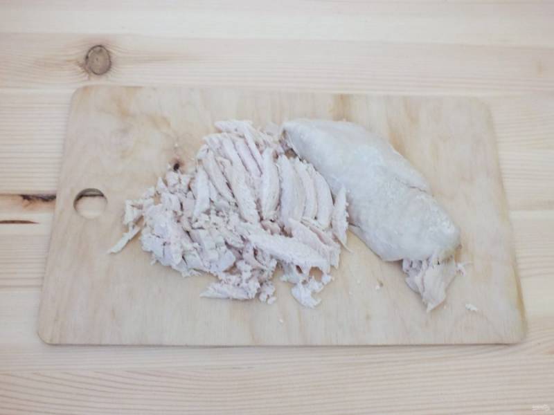 Куриное филе нарежьте соломкой.