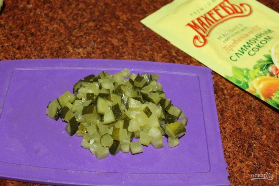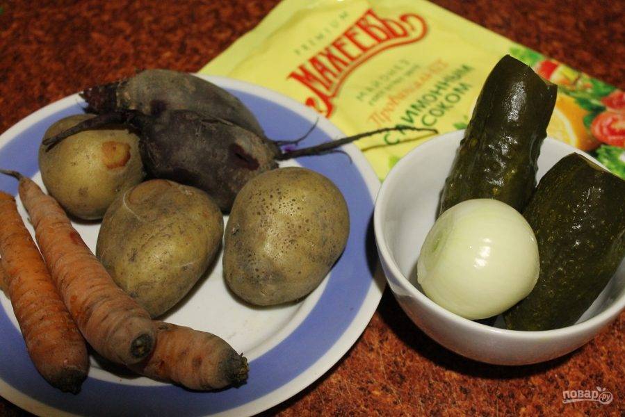 Еще одна вариация на тему легендарного блюда - селедки под шубой. Вкусовые качества этого салата не подлежат сомнению, тем не менее, предлагаю добавить соленые огурцы, чтобы придать новых красок.