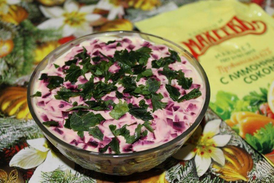 Наверное, одним из самых популярных новогодних салатов является «Селедка под шубой». И сколько уже придумали вариантов приготовления этого салата, каждый раз называя его по-новому! Вот вам ещё один.