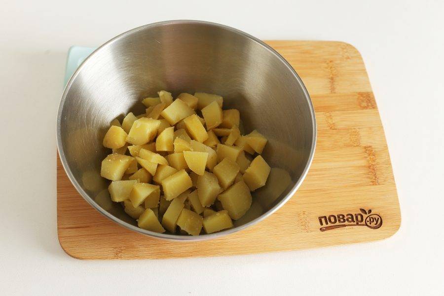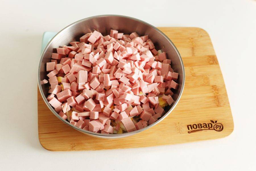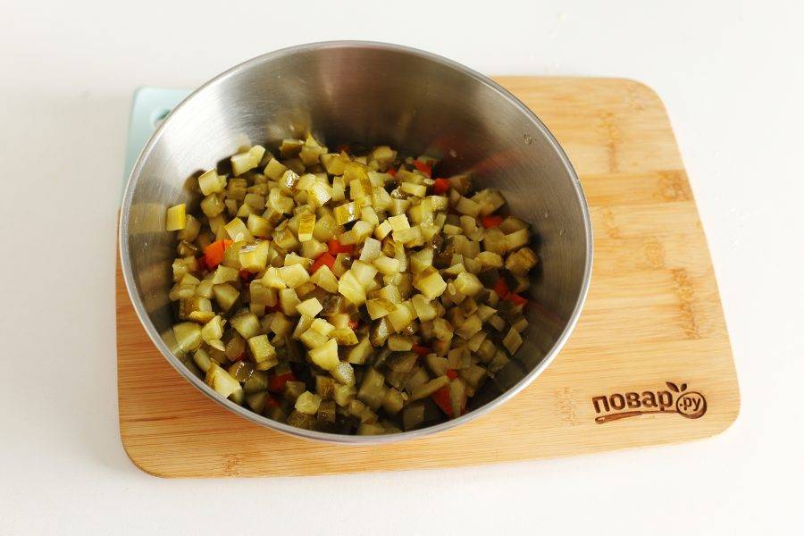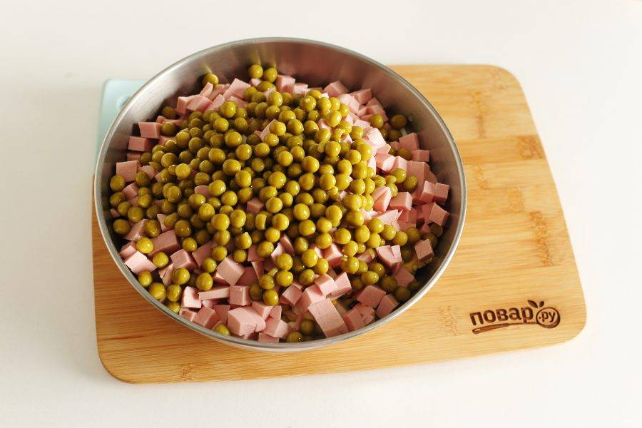 Добавьте горошек, предварительно слив с него всю жидкость.
