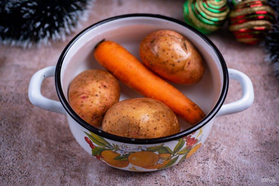 В кастрюле с водой отварите до готовности картофель и морковь «в мундире».
