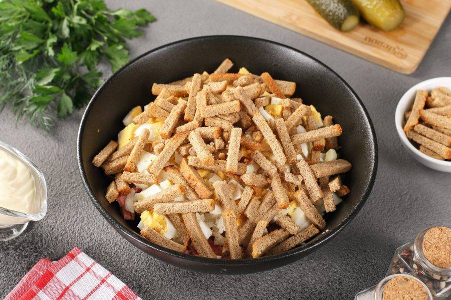 Сухарики добавьте в самом конце перед подачей, чтобы они не размокли.