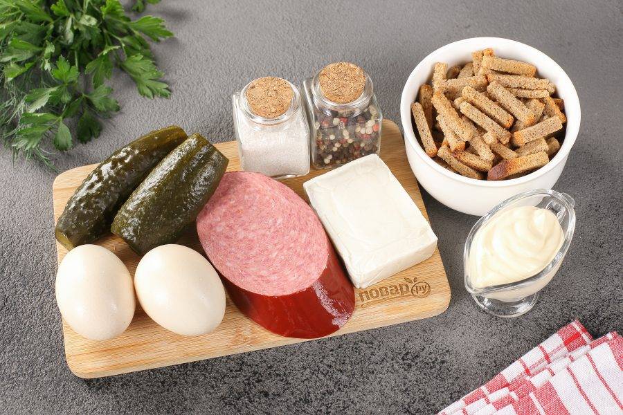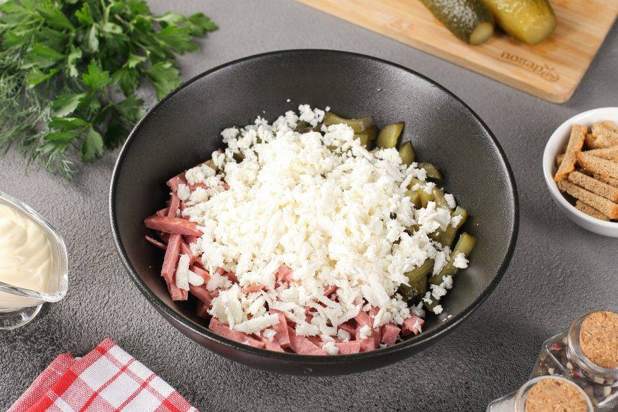 Салат с колбасой и сыром