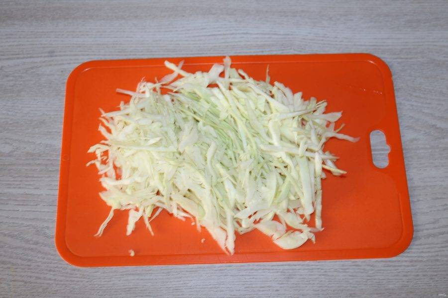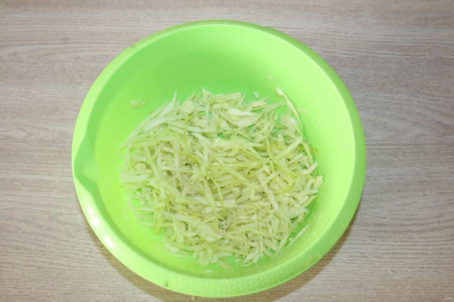 Добавьте капусту, полейте оливковым маслом. Перемешайте.