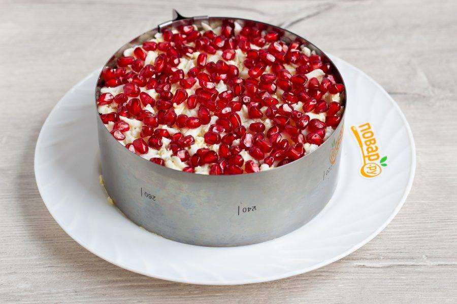 Последним слоем выложите зерна граната и уберите салат в холодильник на 1-2 часа.
