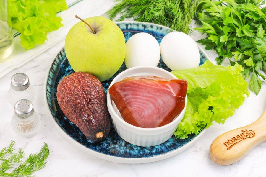 Салат с авокадо и тунцом и яблоком