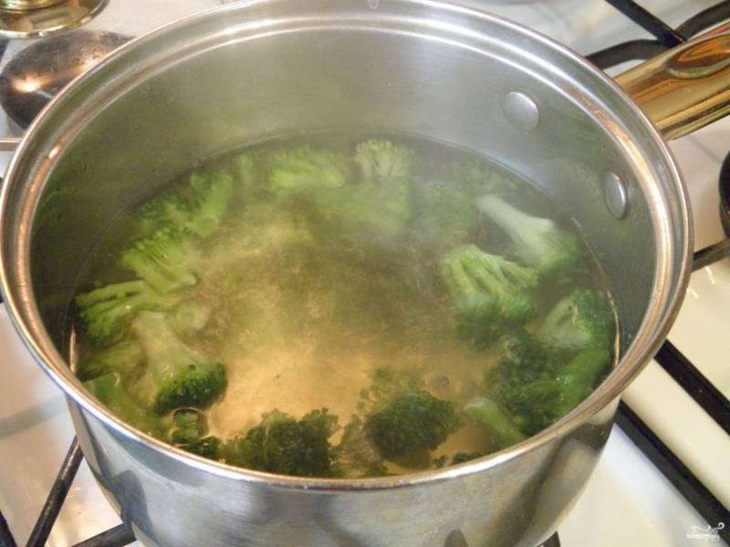Доведите до кипения воду, посолите её, а затем положите в неё брокколи. Варите пару минут до мягкости капусты.