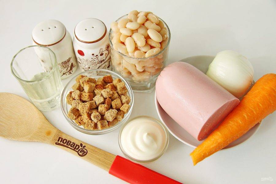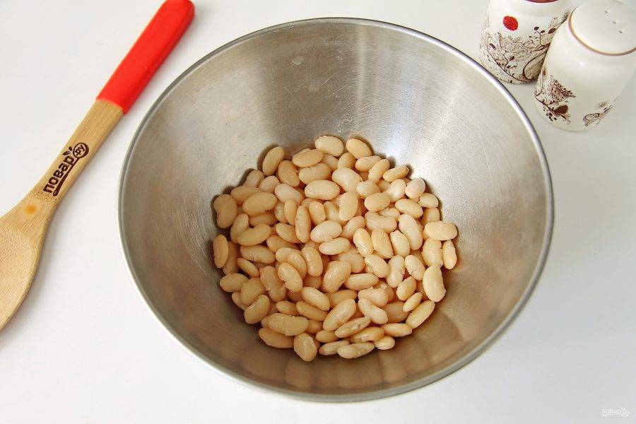Подготовьте все ингредиенты. Фасоль отварите до готовности заранее или используйте консервированную, предварительно слив с нее всю жидкость. Подойдет как красная, так и белая фасоль.