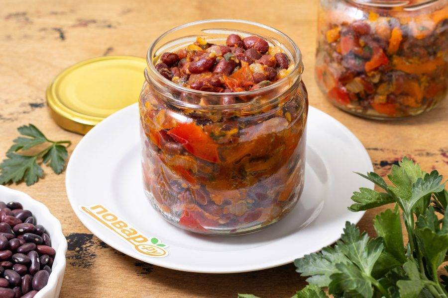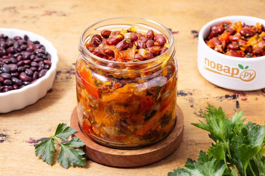 Предлагаю рецепт овощного салата с фасолью, который можно заготовить на зиму. Он получается не только вкусным, но и хорошо насыщает! Овощи добавляют салату сочности, а специи согревающие нотки.