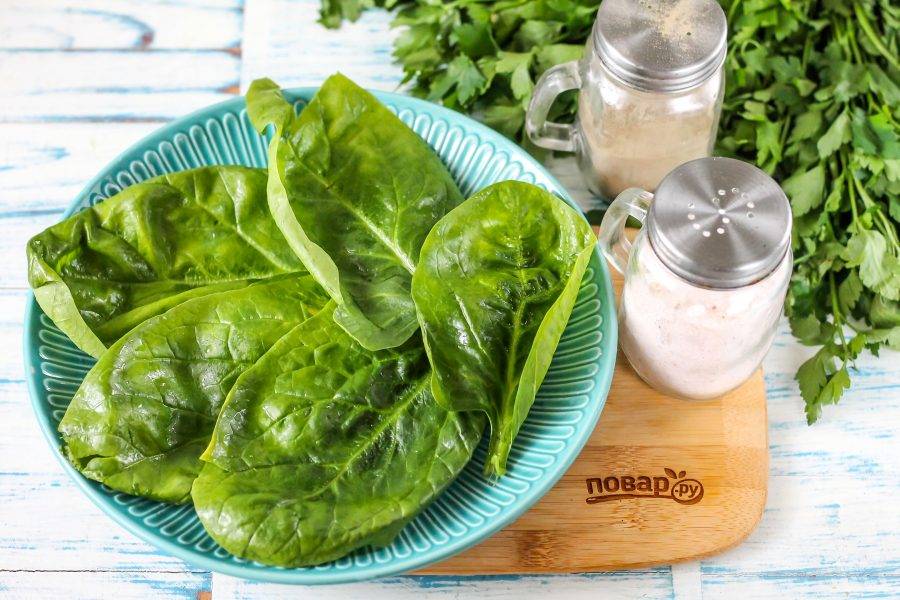Разберите пучок шпината, срежьте стебли и промойте каждый лист зелени в воде, затем промокните бумажными салфетками. Выложите основу из зелени на тарелку.