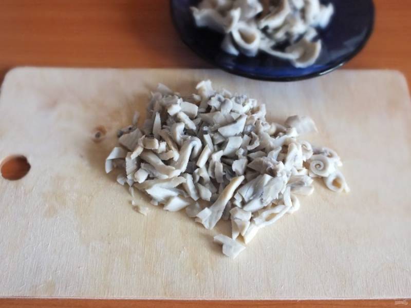 Кальмары нарежьте соломкой.