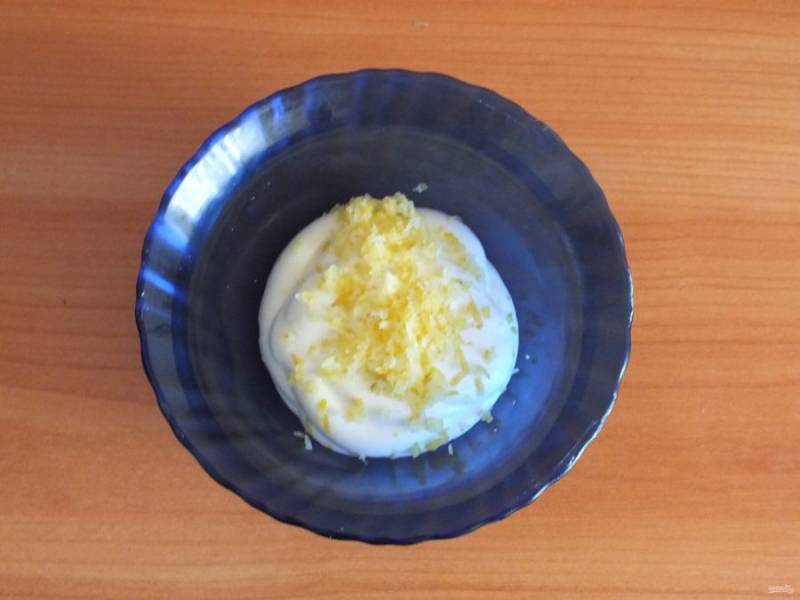К майонезу добавьте цедру лимона. Перемешайте.