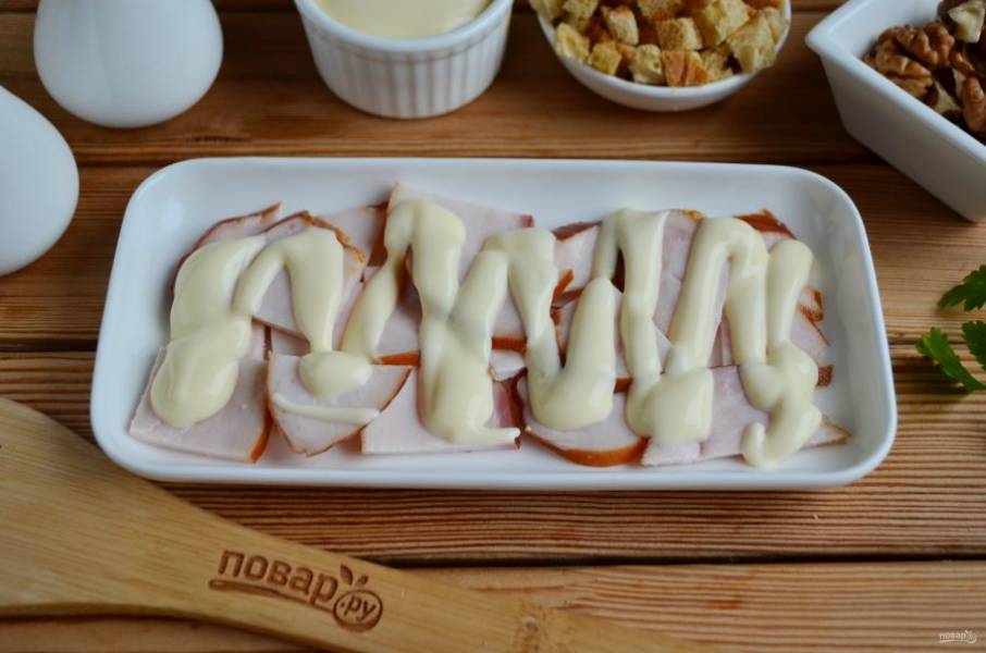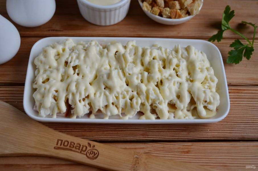 Полейте майонезом.