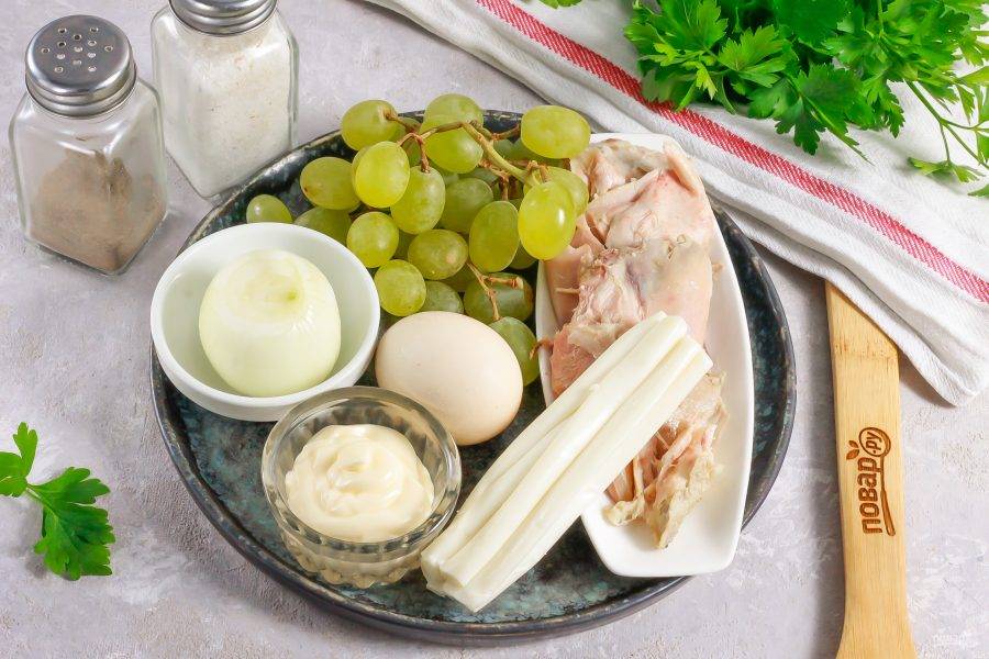 Подготовьте указанные ингредиенты. Куриное яйцо отварите заранее и остудите.