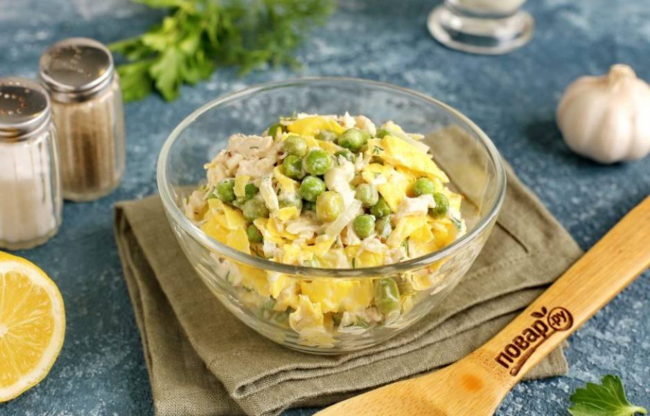 Подготовьте все ингредиенты. Куриную грудку предварительно отварите в подсоленной воде и остудите.