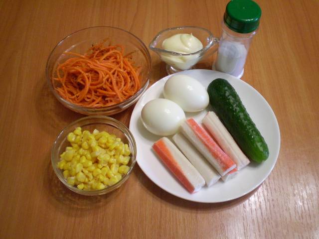 Салат с корейской морковкой и крабовыми палочками